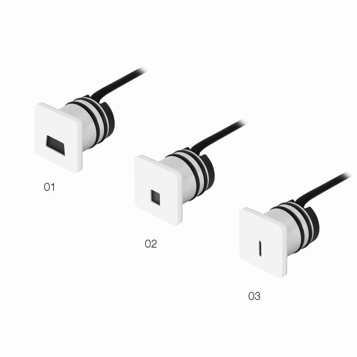 Lui is a square step marker (35x35mm) offering precise illumination for corridors and stairs. Its compact, minimalist design allows for versatile installation while maintaining high performance and visual comfort.